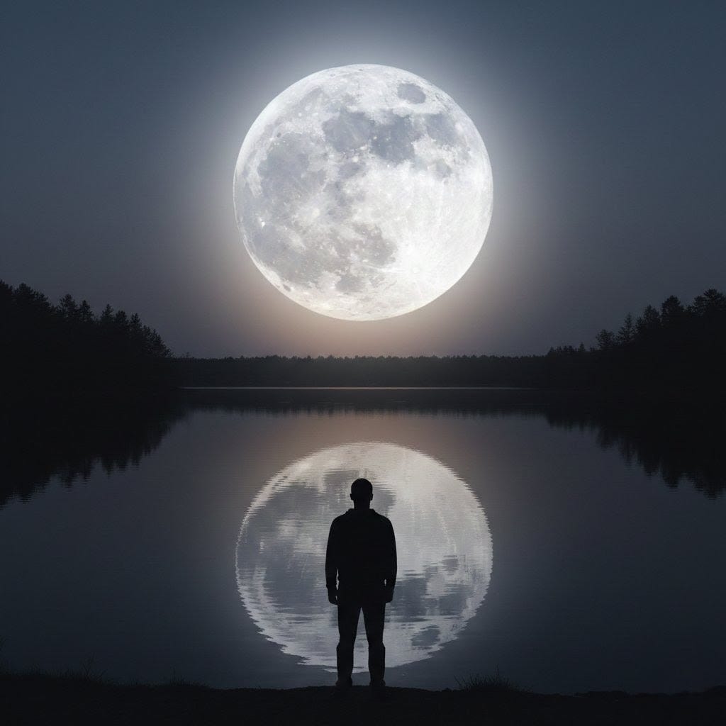 Love is moon: liquid, laughing, and waiting.